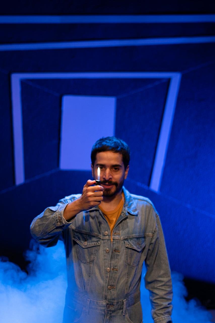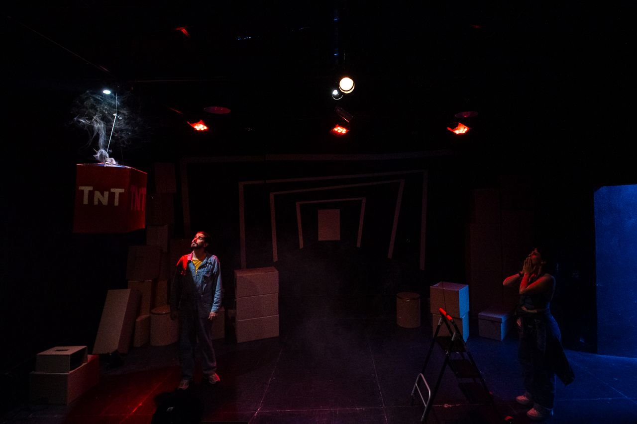 Emmanuel and Alejandra meet every night in the theatre to perform theatrical scenes about theatre. And… ugh, well, even though we are exhausted, we still want to do theatre. So the whole point of this is theatre; the exhaustion of doing it, and acting until we are worn out in order to sell out the tickets.
